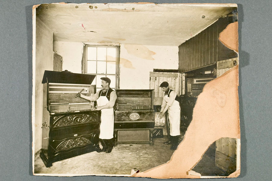 Here’s an industry you might be surprised to discover has an Ancoats connection. This photograph from our archive shows men constructing barrel pianos in the Ancoats workshop of Domenico Antonelli & Sons. Born in Italy, Domenico Antonelli brought his business to Ancoats in 1895.