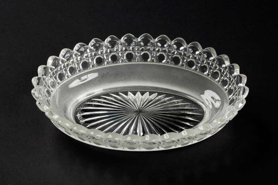 This delicate dish from the museum’s collection was made at Percival Vickers glassworks on Jersey Street in Ancoats in 1896. When the dish was produced, there were no fewer than nine glassworks in Ancoats, churning out glassware of every description, from decorative pressed glass pieces like this one, to bottles for local drinks manufacturers and a huge range of industrial glassware needed by Manchester’s chemical firms.