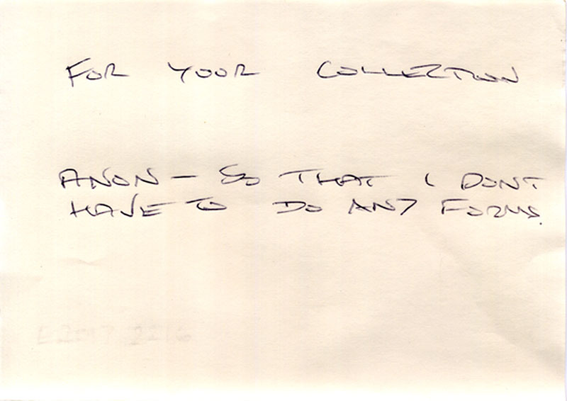 And with those words, our kind donor stopped us from being able to add this item to the archive at the museum.