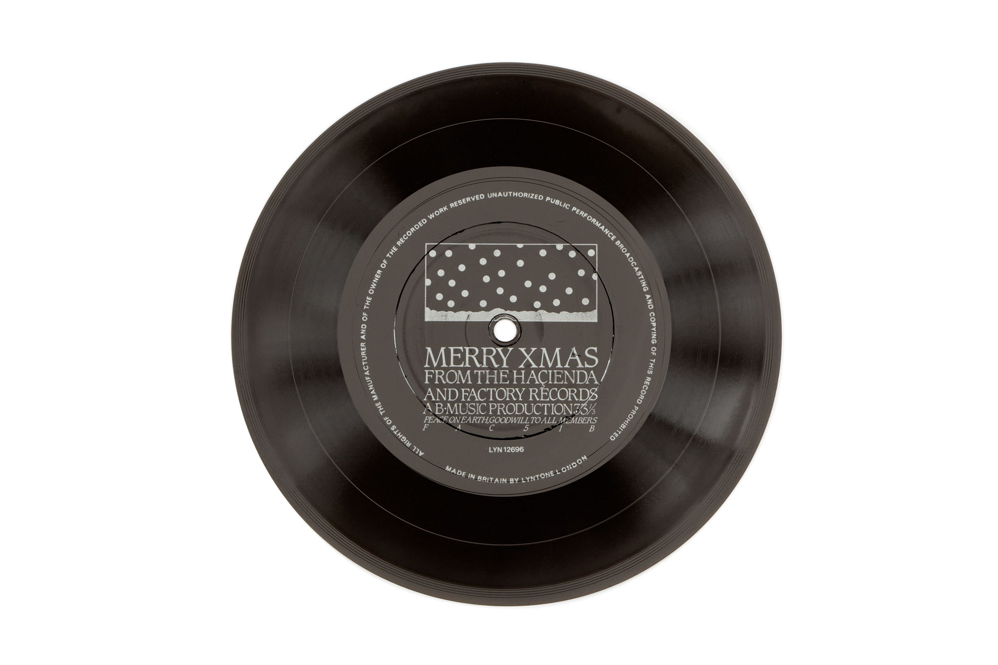 The next official Factory Christmas gift came three years later, in December 1982. Factory held the first Haçienda Christmas Eve Party and guests received a commemorative flexi-disk, FAC 51B Merry Xmas from The Haçienda and Factory Records. The disk contains two heavily synthesised Christmas carols recorded by New Order, The Rocking Carol (also known as Little Jesus Sweetly Sleep/We Will Rock You) and Ode to Joy. The tracks are delightfully unsettling rather than festive.