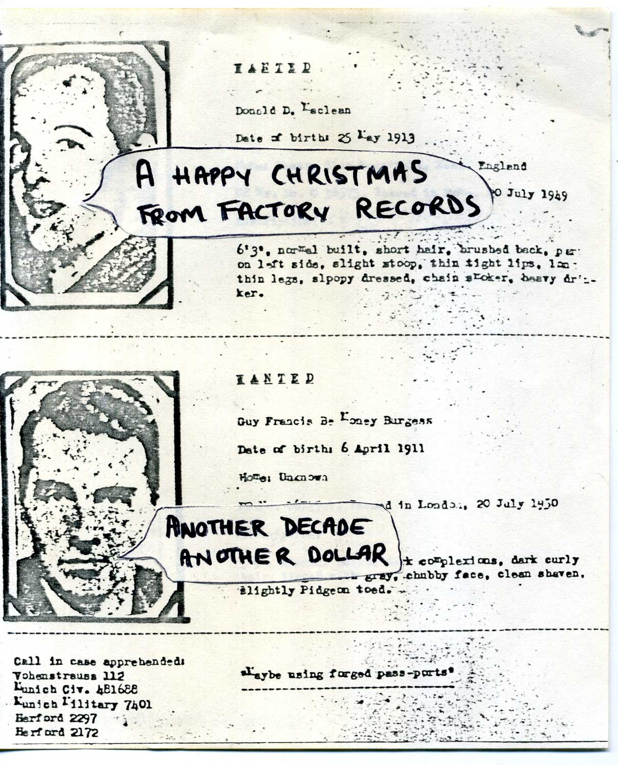 The Christmas cards and gifts are a social history of Factory Records, often marking important products or events from a given year. The first true Factory Christmas gift was given out in 1979, and has an out of the ordinary FAC catalogue number, FAC X79. Not only is the number completely out of sequence, but it has a letter code unlike anything else in the catalogue. It doesn’t appear in Matthew Robertson’s Factory Records: The Complete Graphic Album, either.