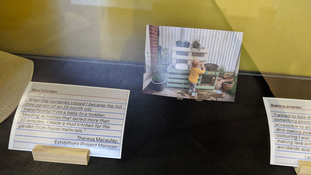 For some people, the pandemic has allowed for refocused priorities or provided time for new projects, such as building their toddler a mud kitchen like Theresa did, or enabling Paula to get kittens. This virus has affected everyone in some way, and we want to make sure that this variety of experiences from across society is represented in our collection. You can check out the display in the Conversation Space in the Textiles Gallery.