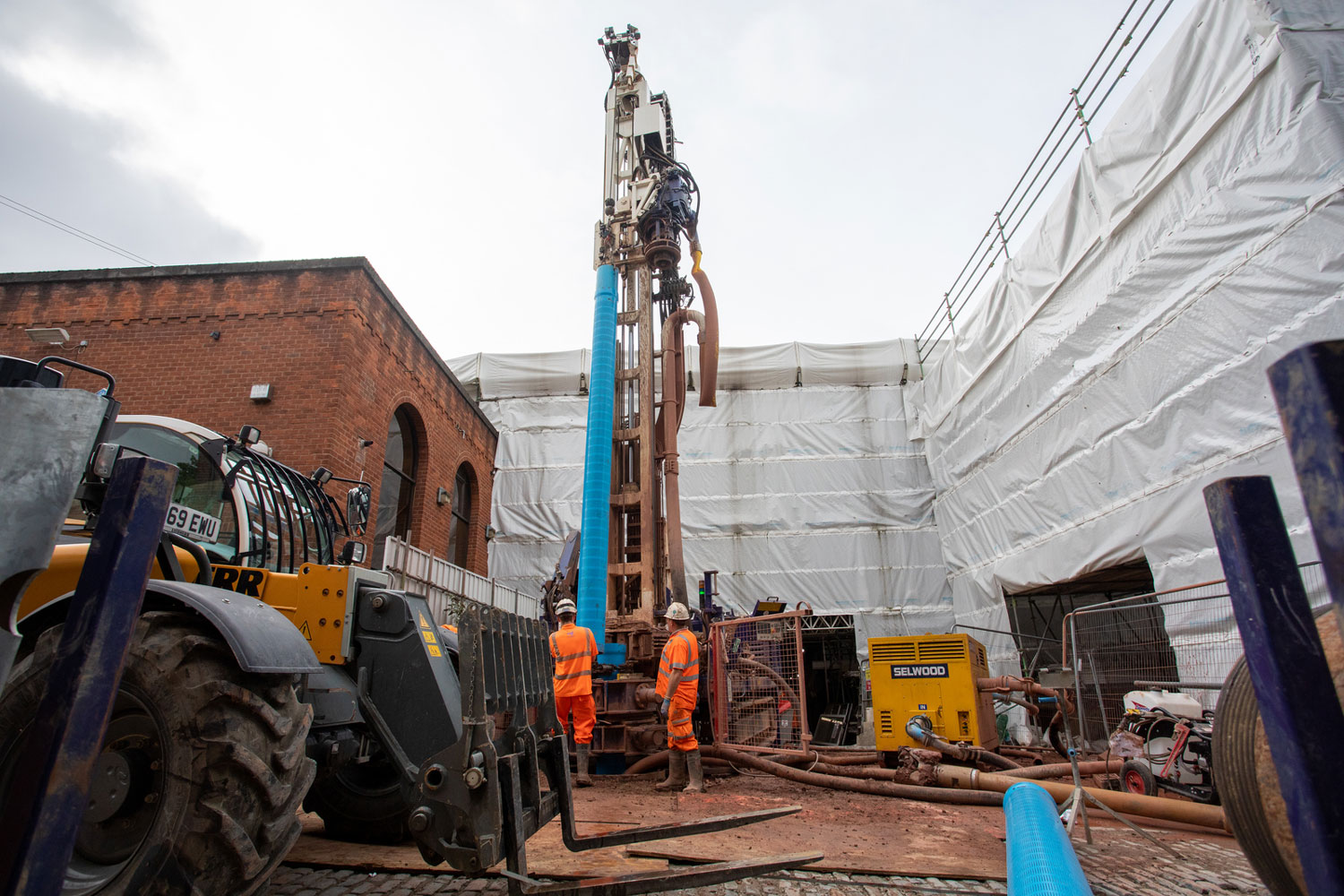 In the 1800s, a well was constructed in the basement of the museum’s Grade I listed 1830 Warehouse, to harness the power of the ground water. This natural resource is now once again being utilised through the installation of a new water source heat pump network. The borehole drilling rig has drilled through rock 85 metres into the ground (a depth almost equivalent to the height of Manchester Town Hall clock tower) to enable water to be extracted and re-injected into the ground. The water will be used to heat both the 1830 Warehouse and the museum’s iconic Power Hall.