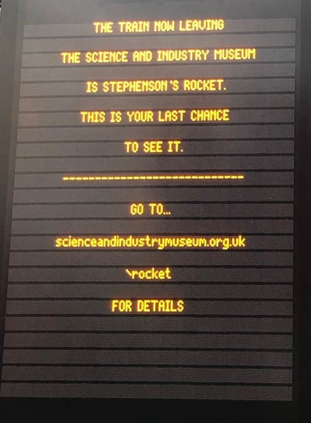 If all that wasn’t enough, Piccadilly Station have got ‘all aboard’ this week with a last chance message on their announcement boards: