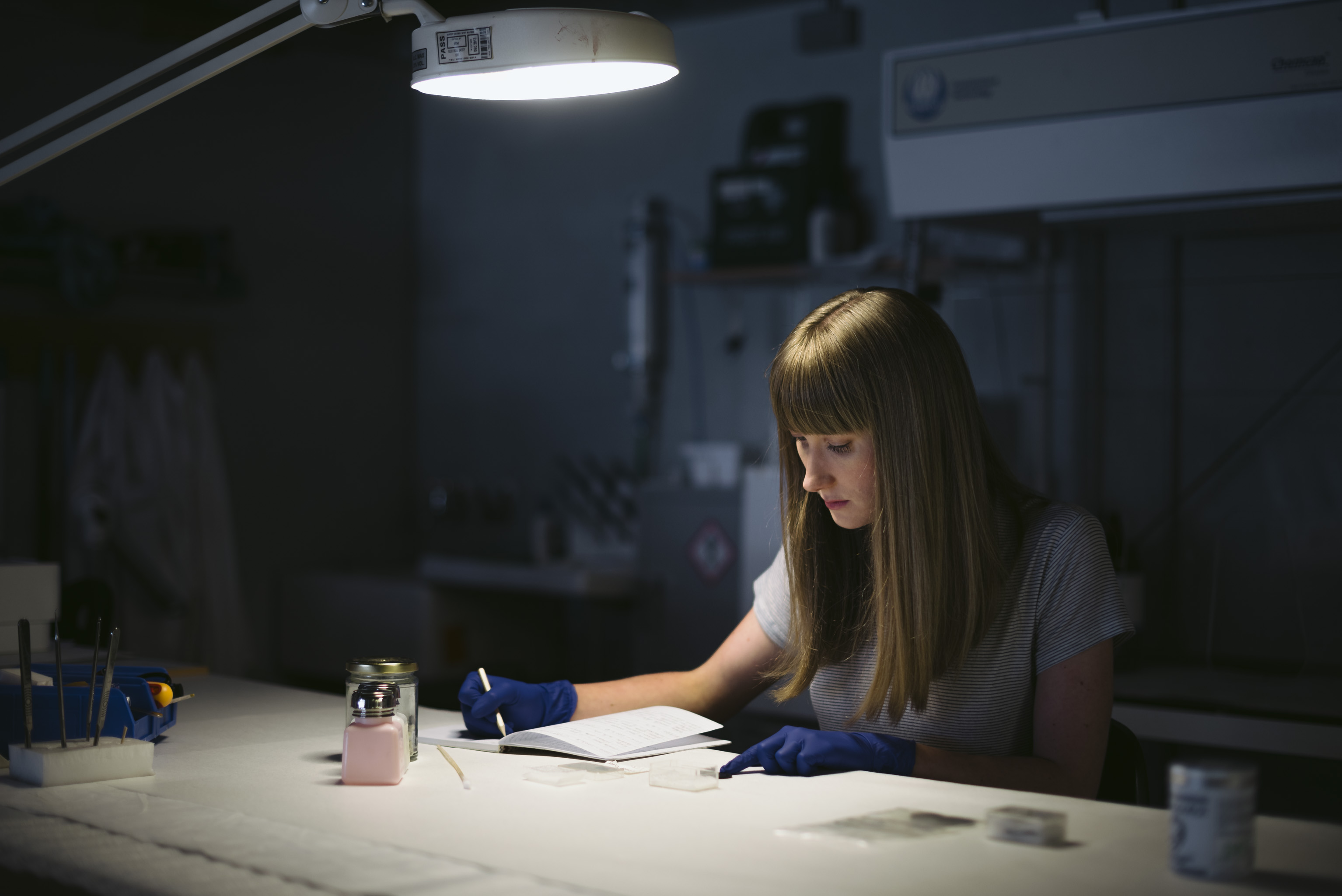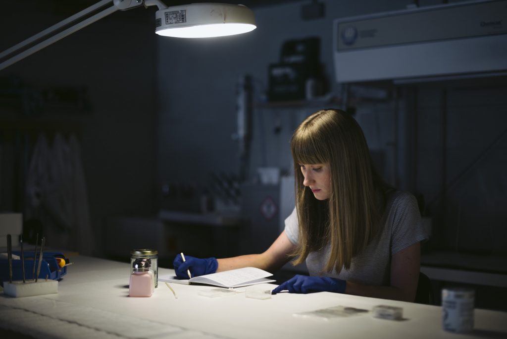 “Here I’m checking the condition of the object—looking at it closely and commenting on its surface condition, stability and thinking about its suitability for long-term display. This gets written into a notebook and then added to a condition record on the collections database.