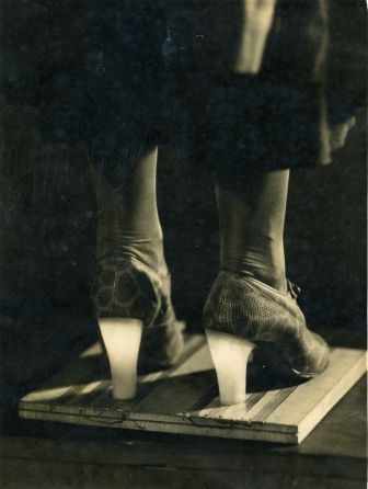 This photograph is one of my favourite things in the collection. I even have a copy of it next to my desk. The story of these shoes shows the entrepreneurial spirit of Manchester. It’s also a tale of innovation, perseverance and imagination, but ultimately disappointment. I love the image because the idea of a woman patiently standing on a wooden board on top of a wall, wearing dancing shoes with heels that light up, in a pair of slightly wrinkled stockings makes me laugh.