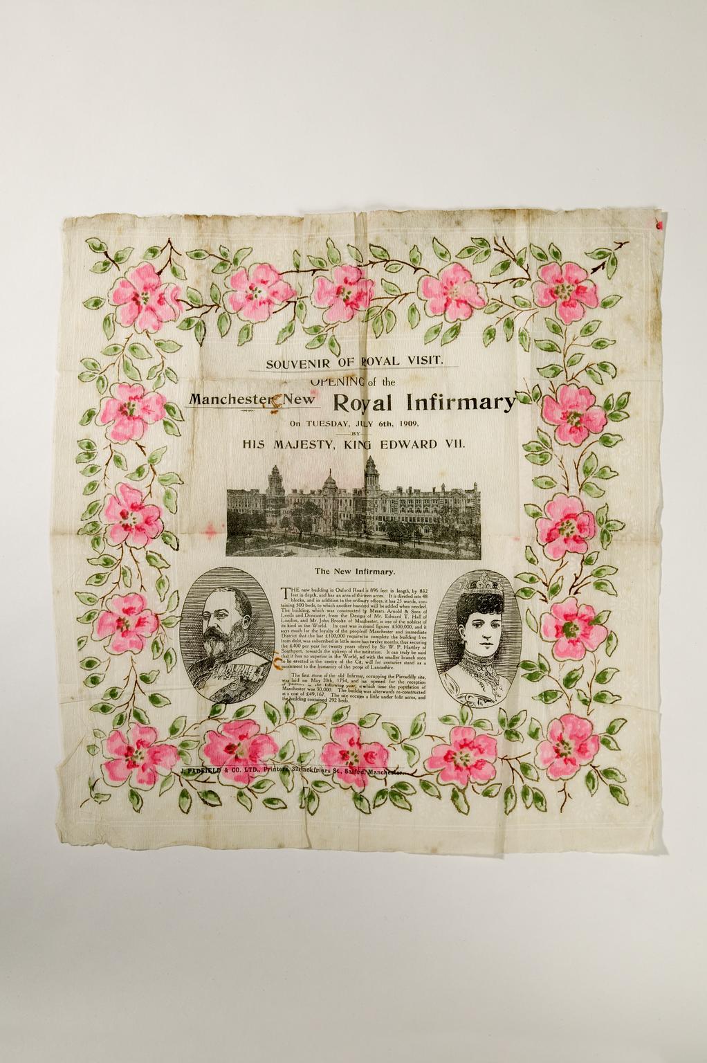 Before the NHS, hospitals were established by civic leaders on a volunteer basis and set up as charities by subscribers who gave regular funds. The Manchester Royal Infirmary was originally located at the centre of Piccadilly Gardens and expanded to include public baths, an outpatient department and an asylum. The hospital moved to its present Oxford Road site, officially opened by King Edward VII and Queen Alexandra, in 1909.