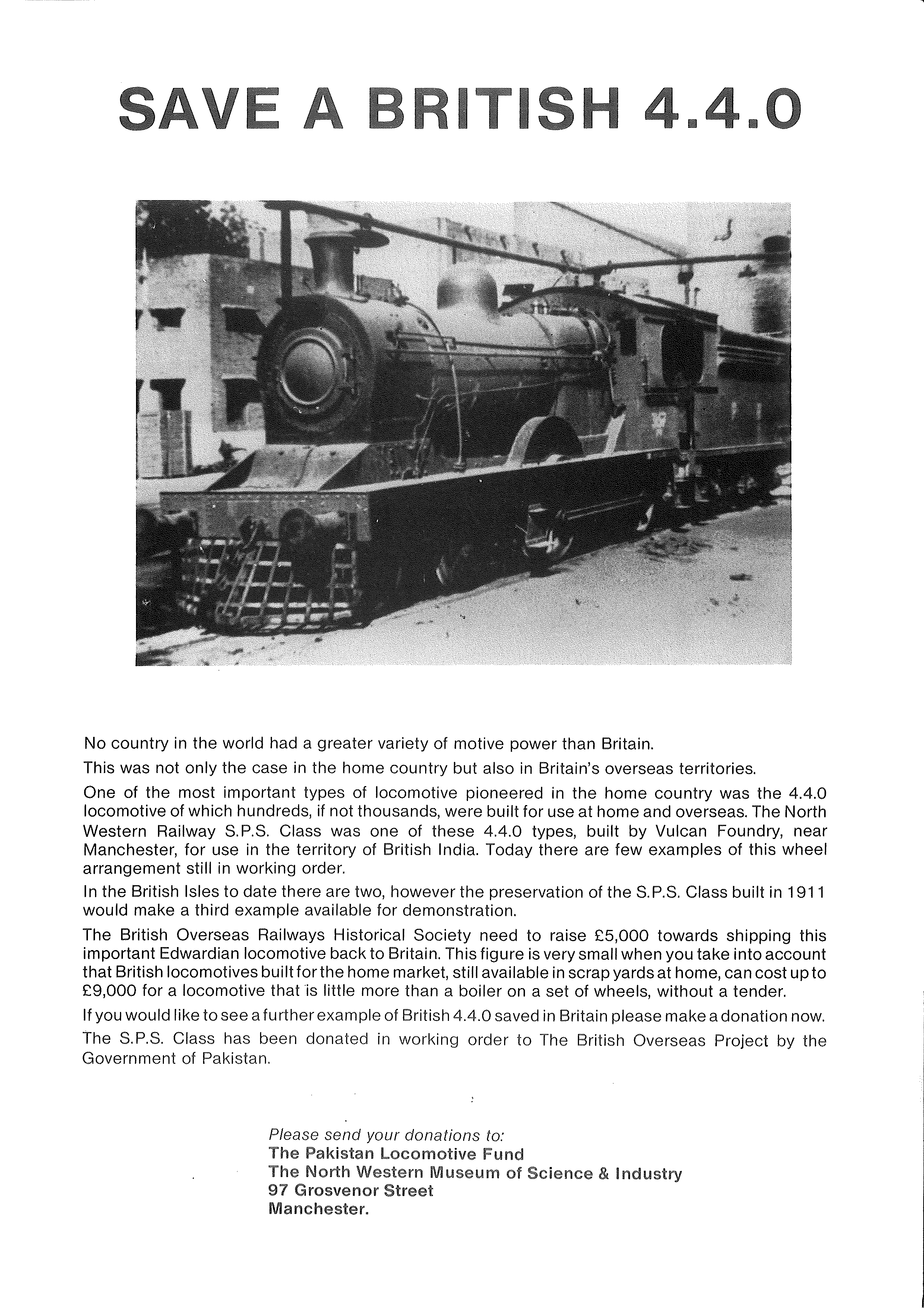 As the founder and first chairman of the British Overseas Railways Historical Trust, I was directly responsible with Dr Richard Hills, for the negotiations to repatriate S P S class locomotive 3157 from Pakistan.