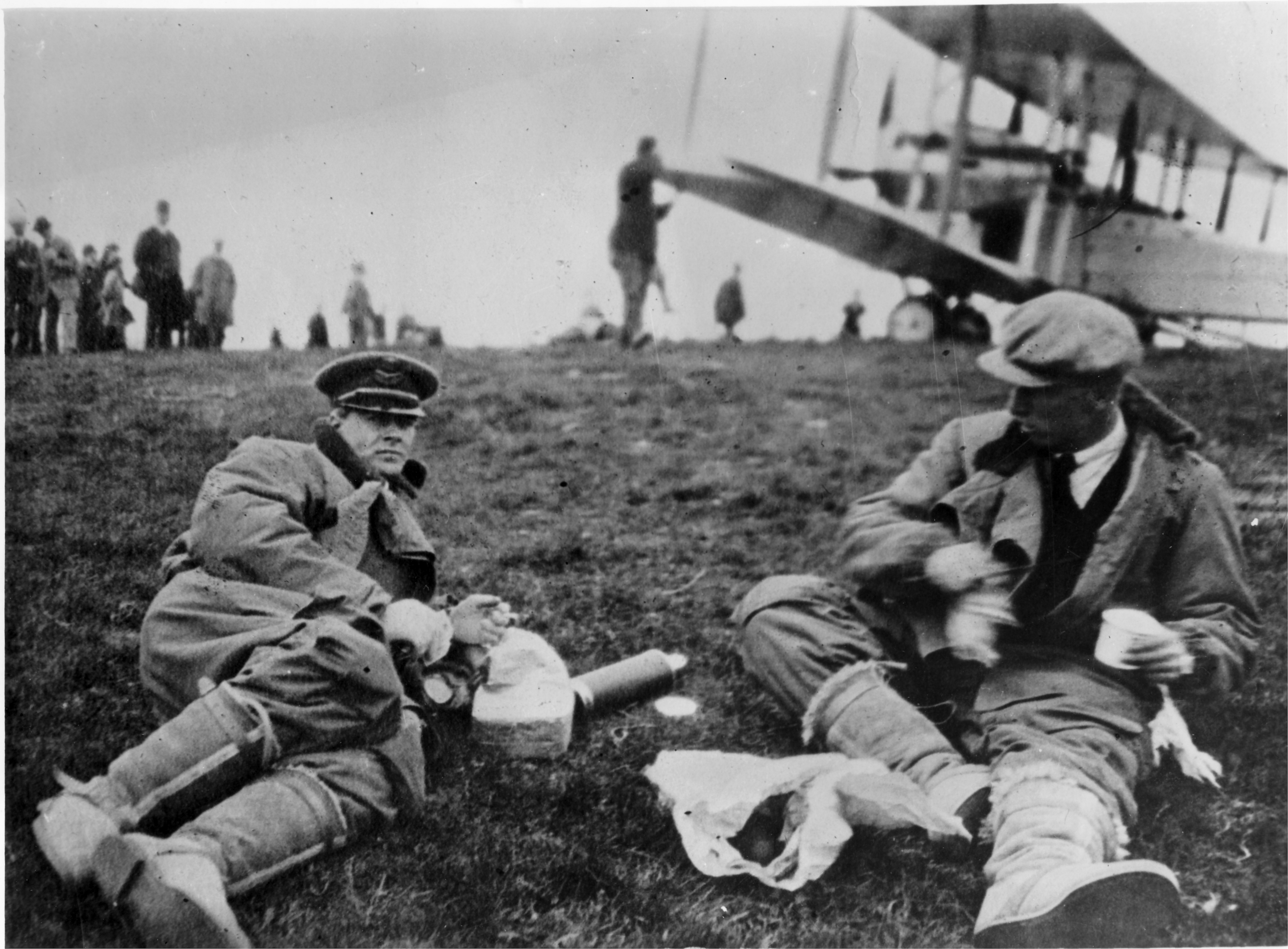 At 8.40am on the 15 June 1919, an aircraft appeared over Clifden, Ireland, fired two red flares and descended to land on what appeared to be the perfect spot. As it set down the aircraft dug into the soft ground of a peat bog, coming to rest in a crumpled heap. Local people rushed to aid the two men on board and, after they had checked they were unhurt, asked where they had come from? The pilot looked up with a grin and said simply, ‘America’. The crowd laughed at his apparent joke, and it was only when the navigator produced a bag of airmail from Newfoundland that they began to accept what these two airmen had achieved.