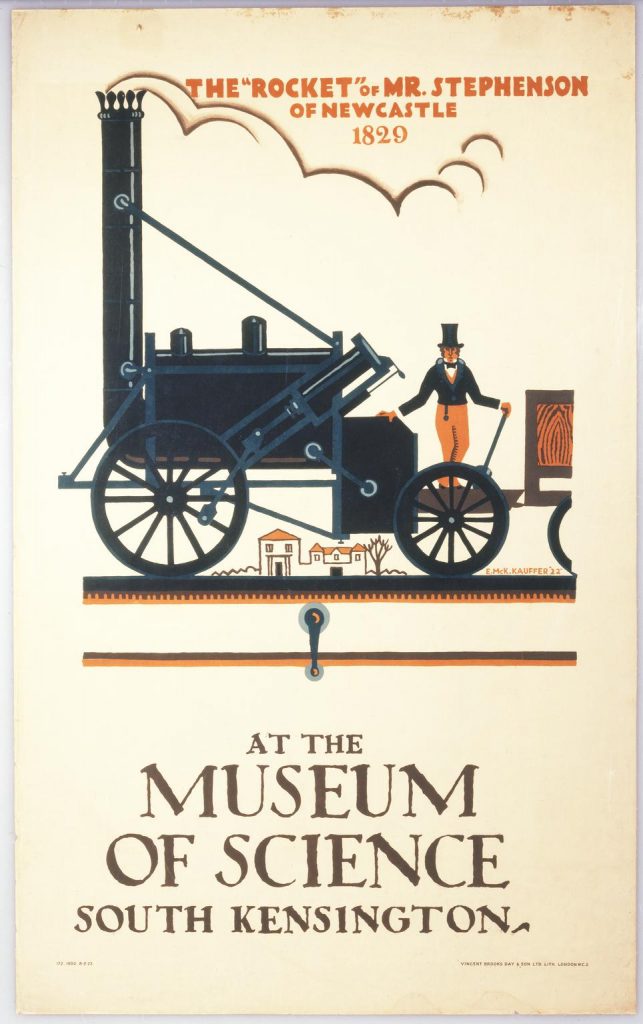 Rocket has been down at the Science Museum since 1862, when it was donated to the then Patent Office Museum. Rocket was undoubtedly one of the most popular attractions at the Science Museum, as this marketing poster from 1922 shows.
