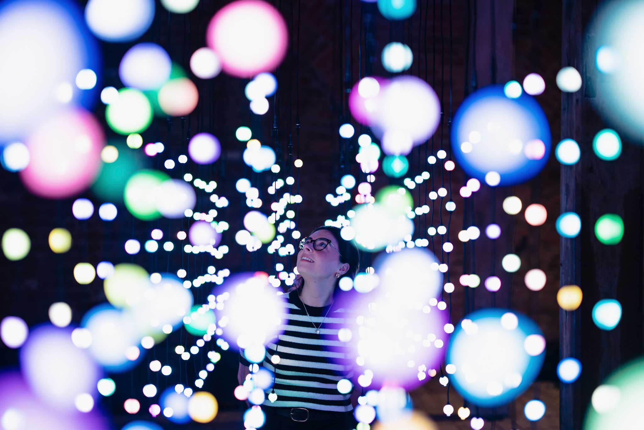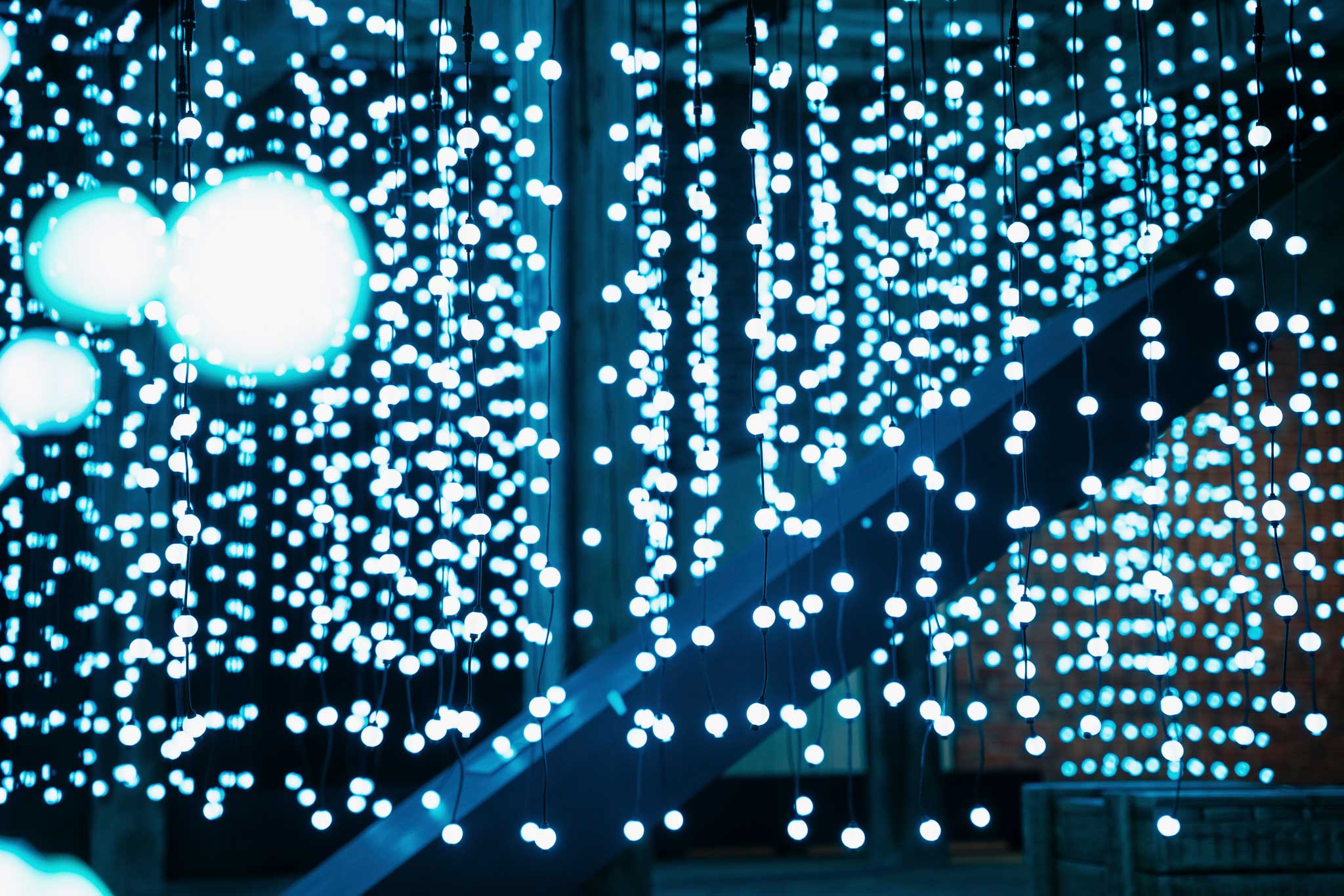 The resulting State of Mind walk-through experience is a development of an earlier Squidsoup installation, called Submergence, which consists of a dazzling array of many thousands of computer-controlled lights that hang on wires.