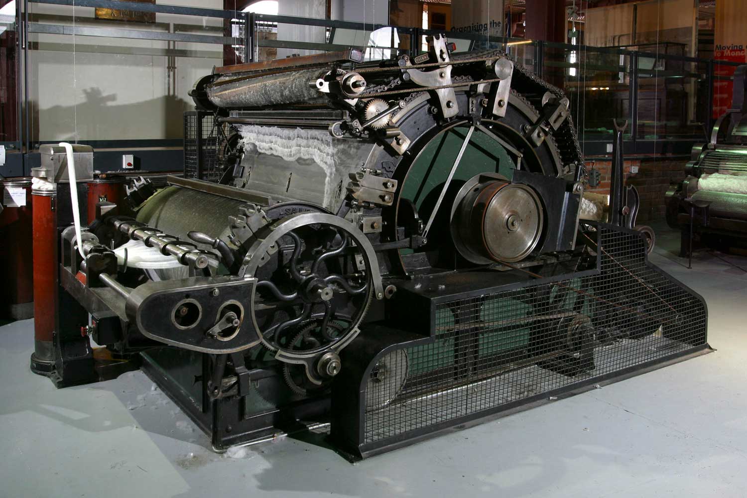 Waste was produced at almost every stage of the cotton spinning process. The light, fluffy fibres that make cotton great for making fabric can also lead to waste. When the cotton was being cleaned and combed in the carding engine, some of the fibres would fly off and settle on the floor, while others would get caught on the tiny wire pins that comb the cotton. This is where much of the waste was produced.